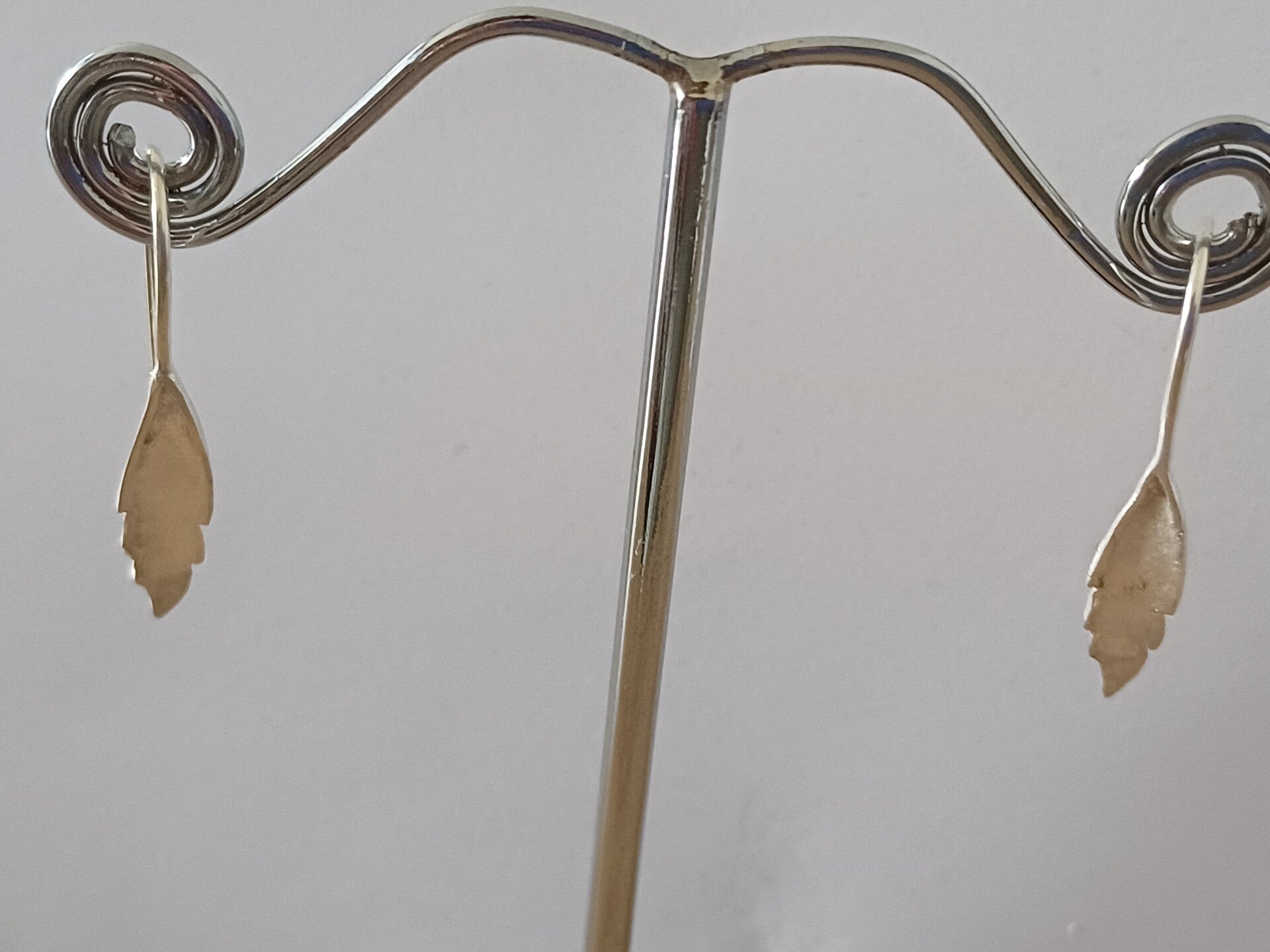 Oorbel in mat zilver aan aansluitende haak in de vorm van een gekarteld blad.