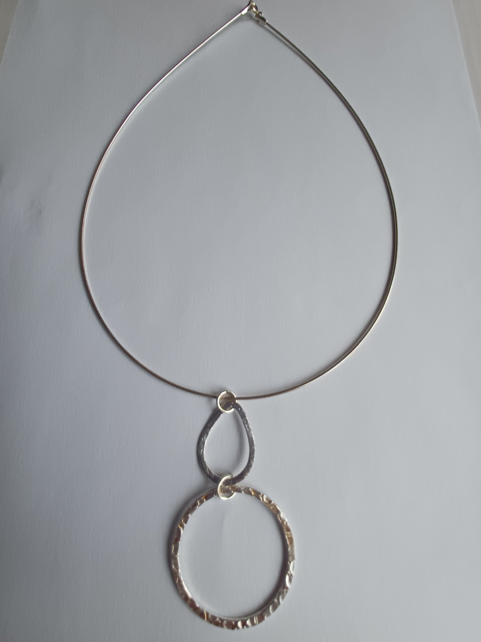 Omega zilveren ketting met ronde en druppelvormige hanger in iced zilver.