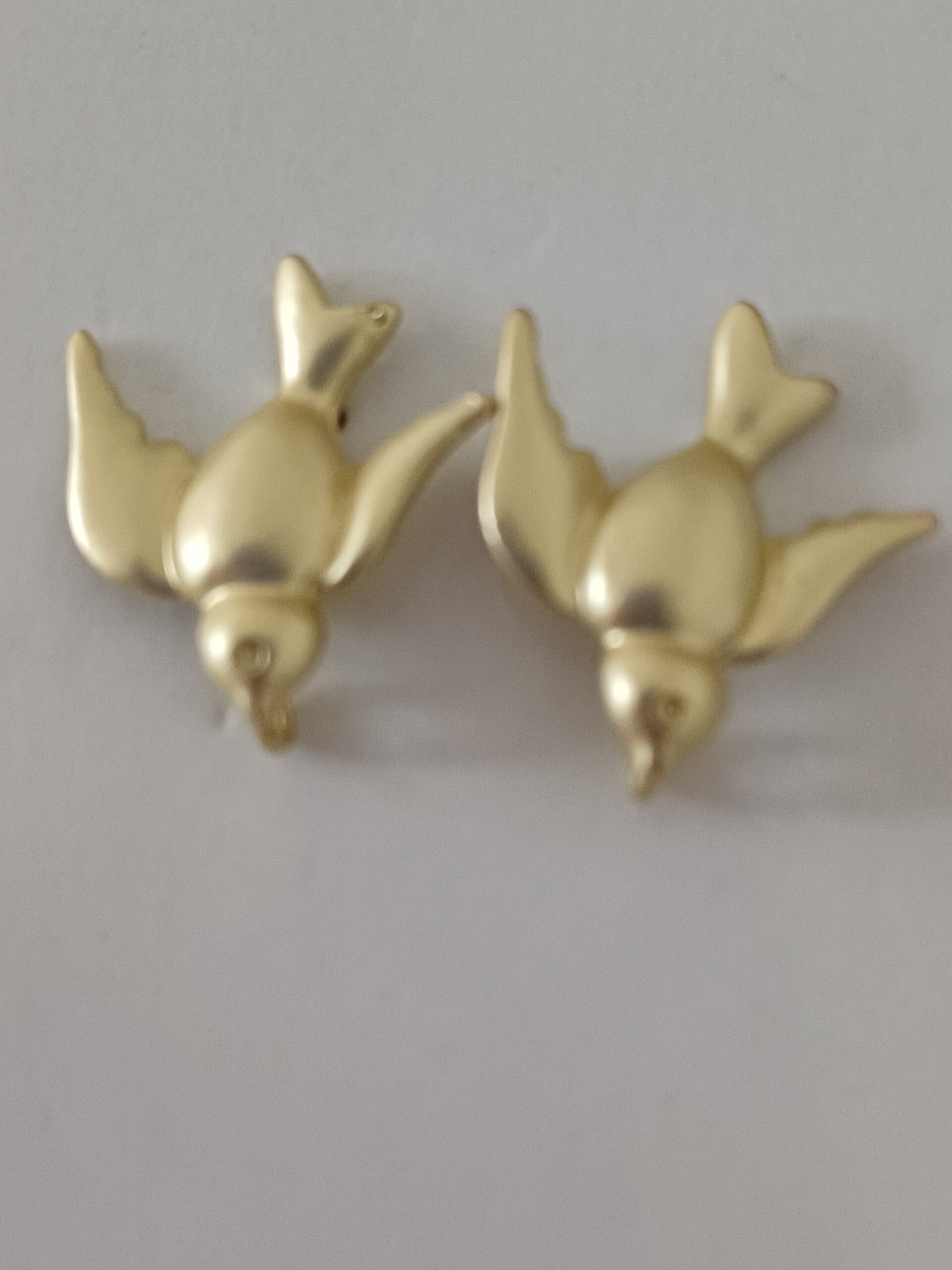 Vergulde oorbel op steker in de vorm van een vogel.