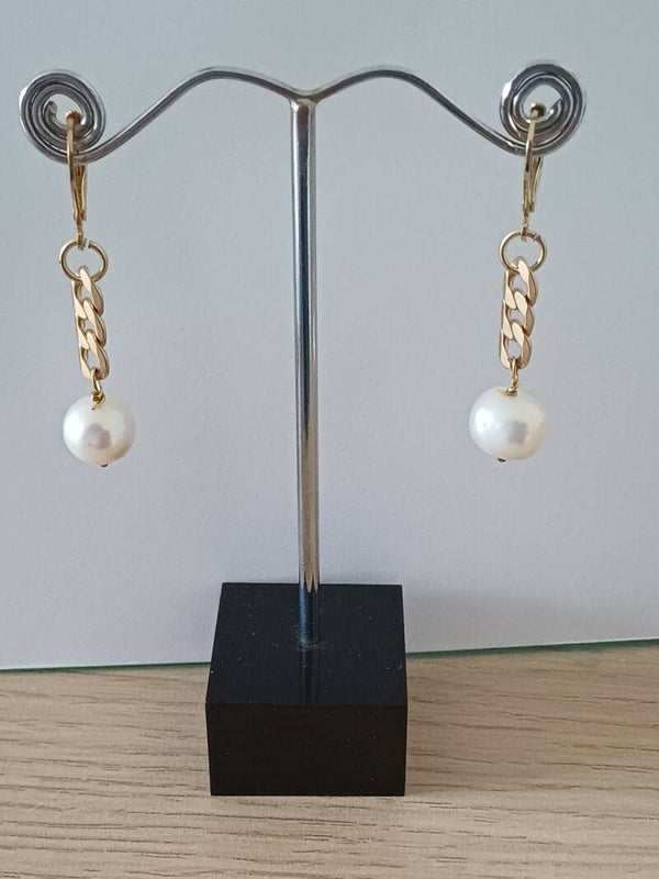 Ronde zoetwaterparel aan een gesloten haak met schakelketting.