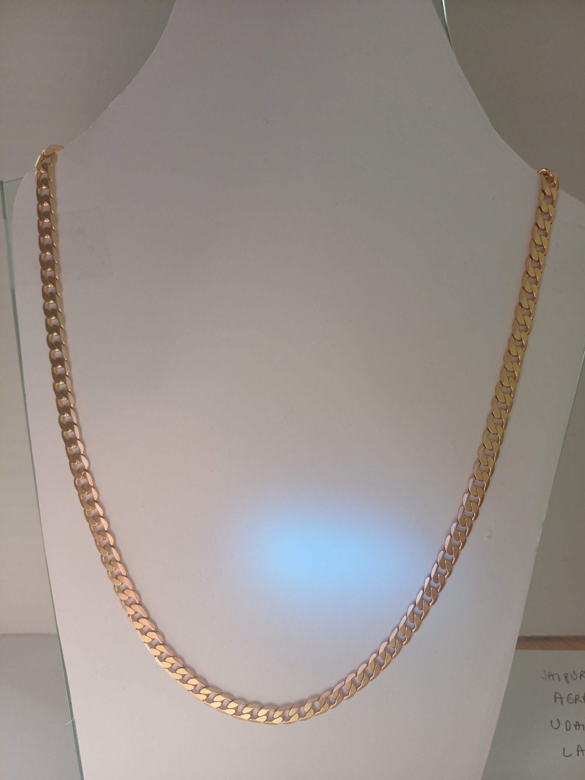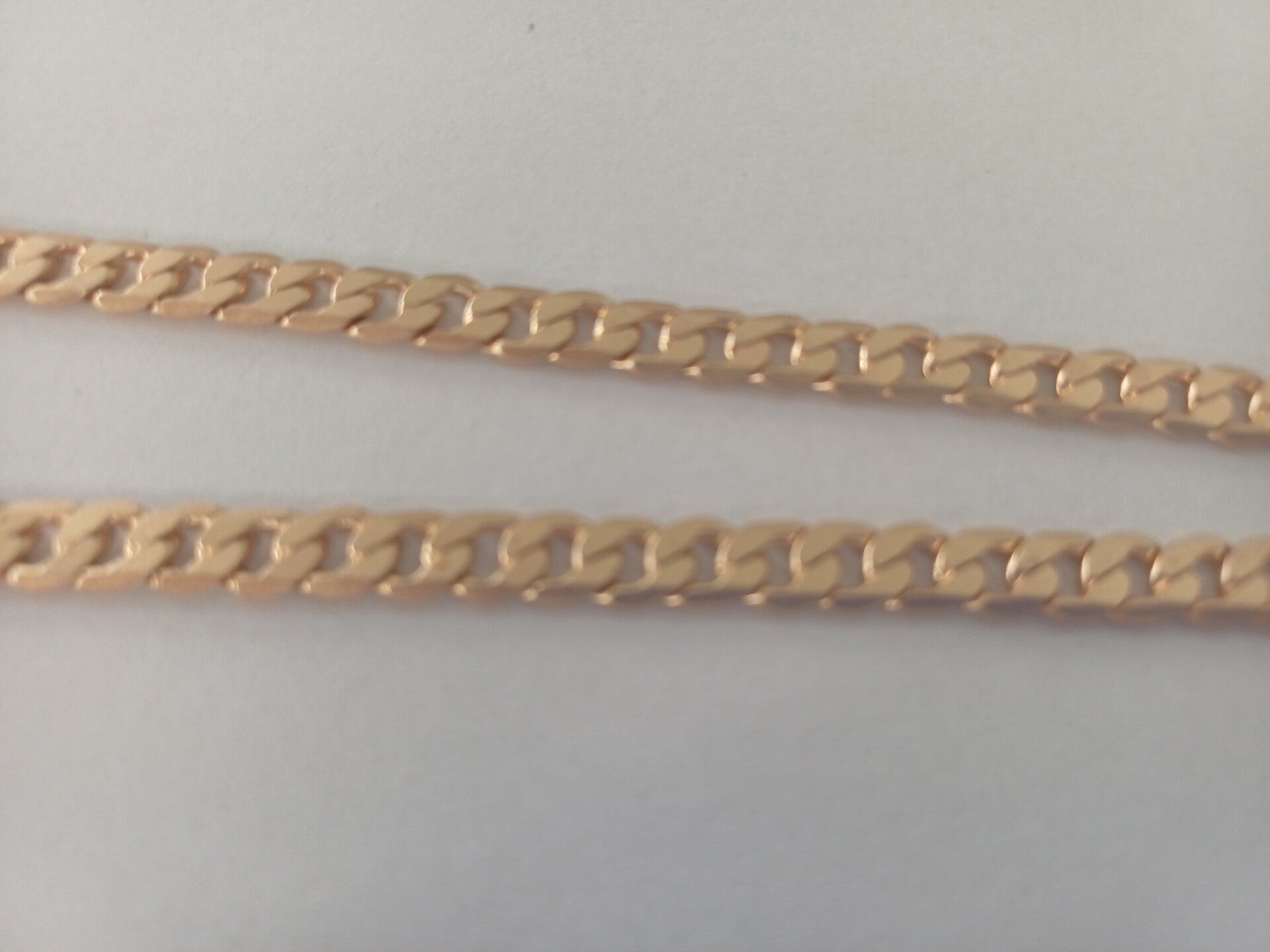 Ketting met platte gourmetschakel in licht rose gouden uitvoering.