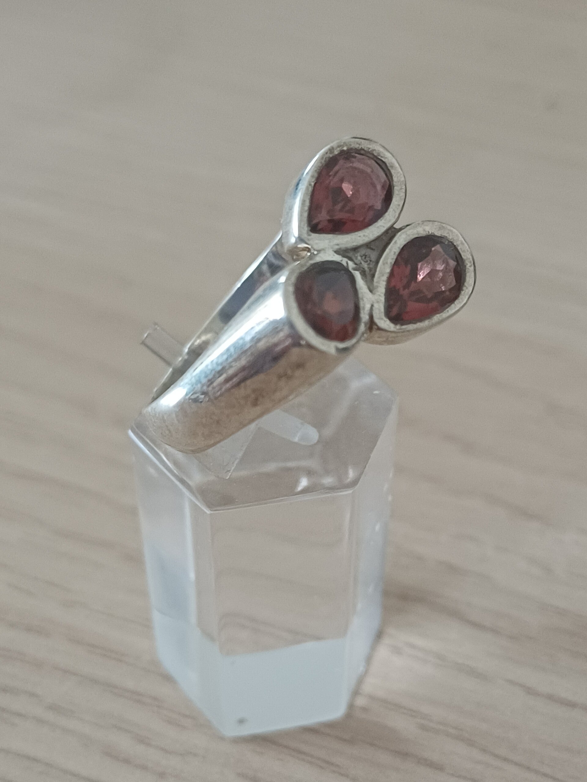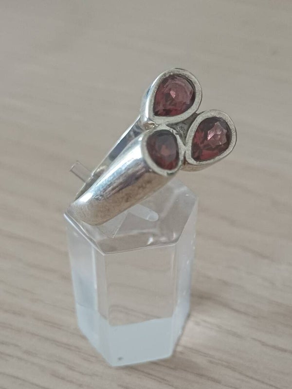Prachtige stevige en toch elegante zilveren ring met 3 granaatstenen.