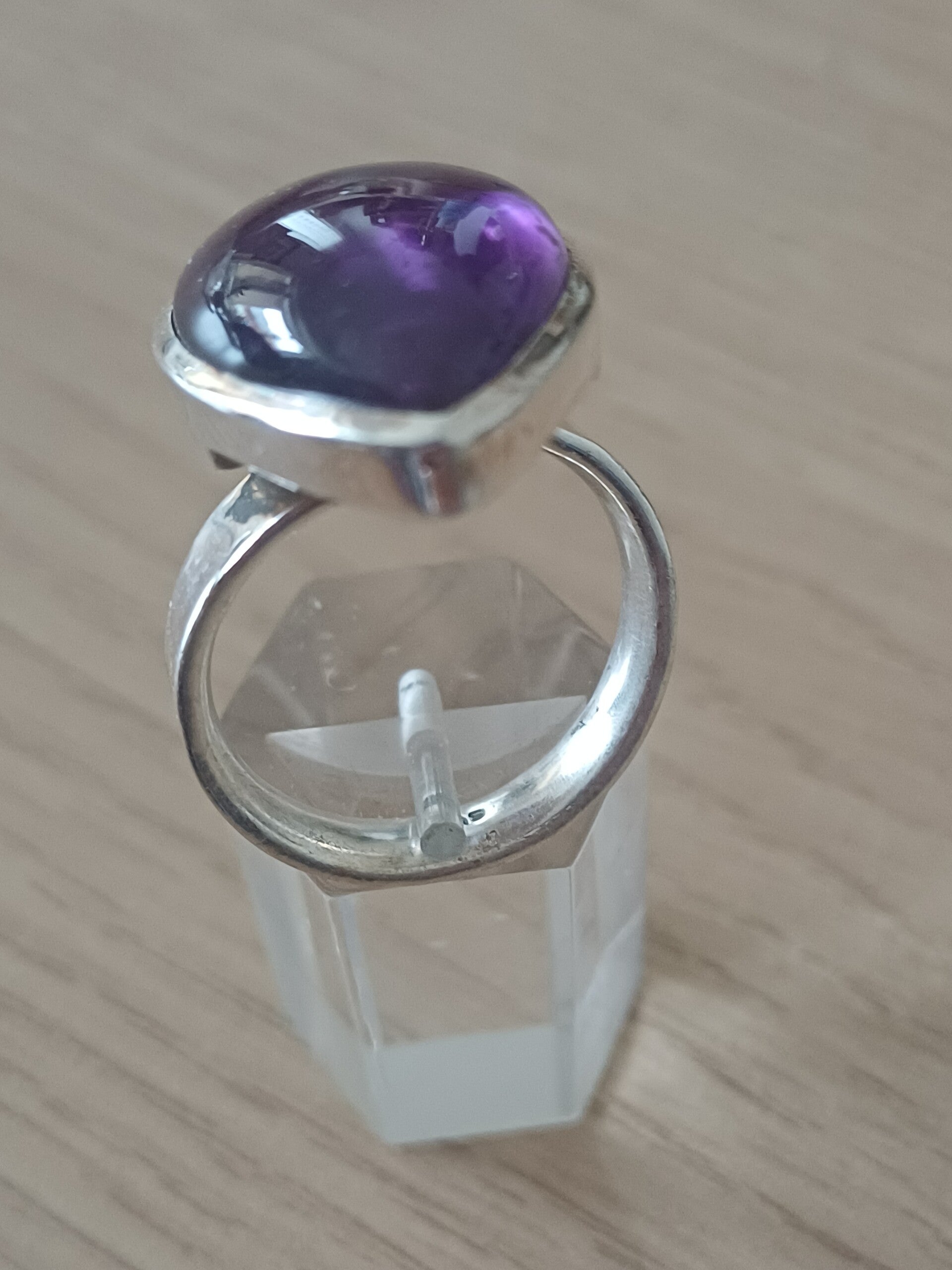 Prachtige grote ring met amethist gevat in zilver.