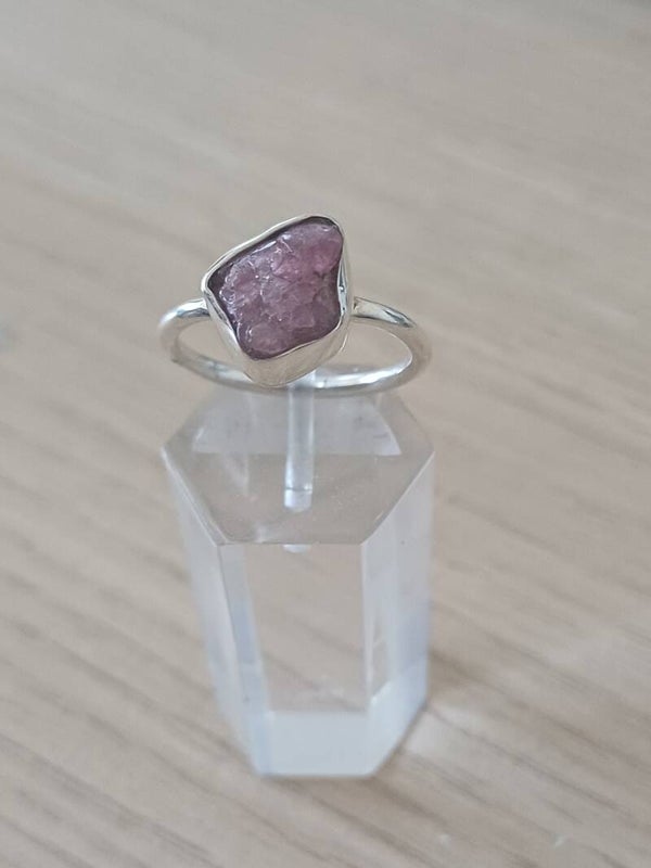 Zilveren ring met roze toermalijn. Ronde band.