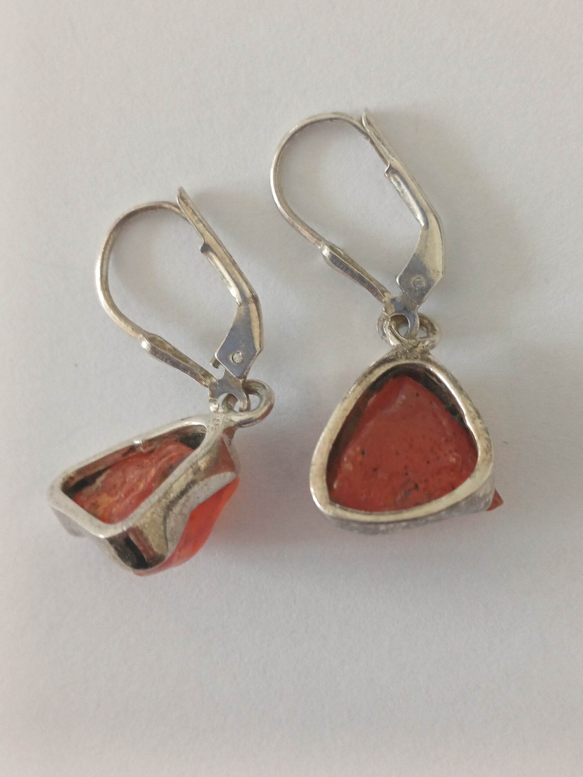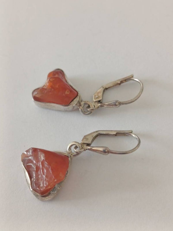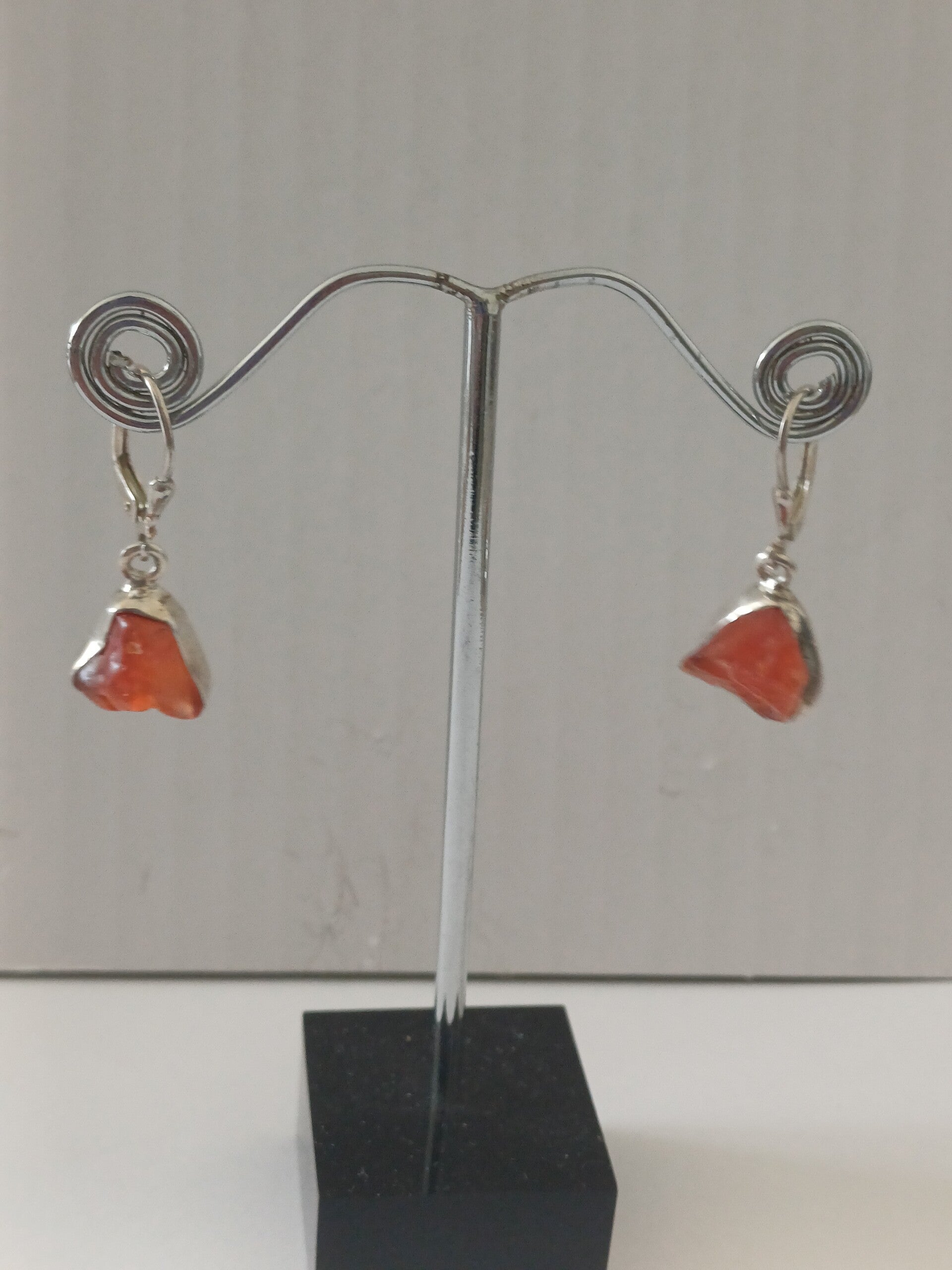 Oorbel in zilver met ruwe carneool stenen aan gesloten haak.