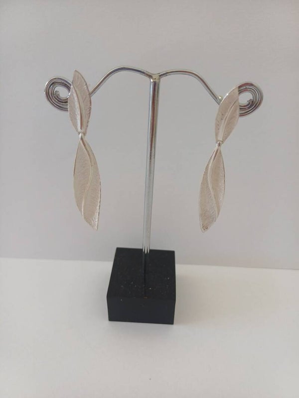 Koninklijke gestroomlijnde oorbel in wit zilver op steker.