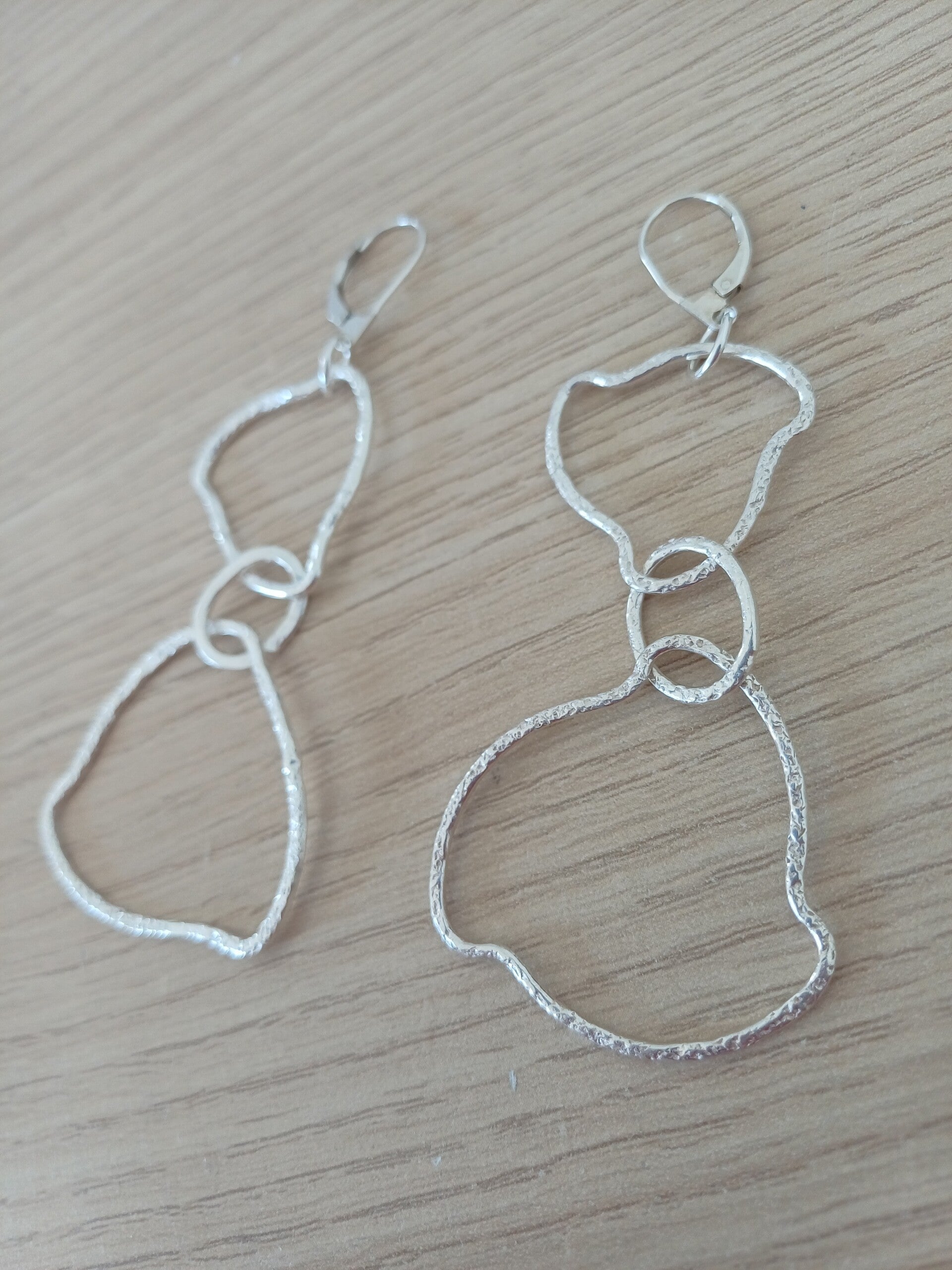 Deze grote oorbel in zilver met wolkjes is afgewerkt met een gesloten haak.
