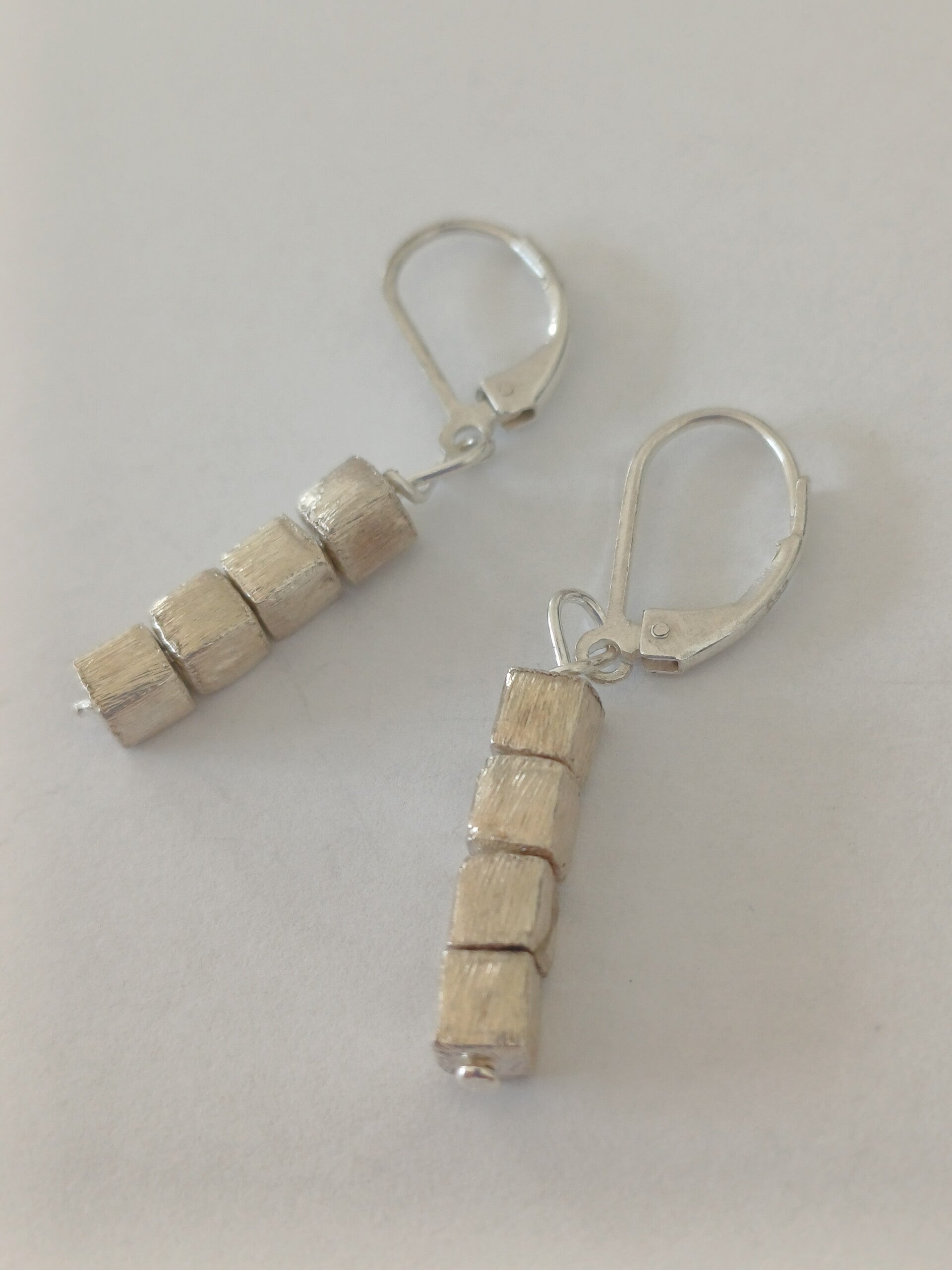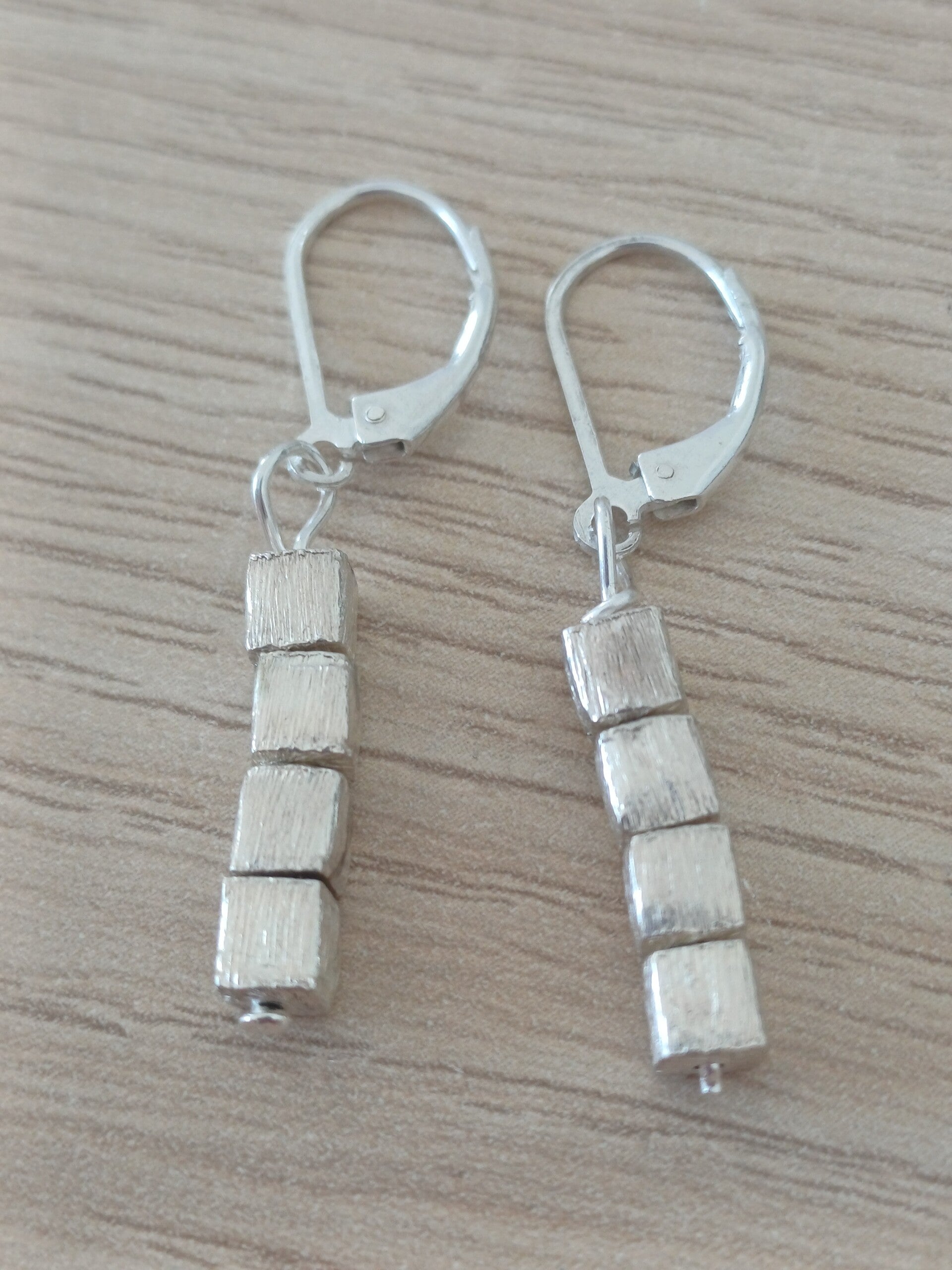 Basis oorbel met masief zilveren blokjes aan gesloten haak.