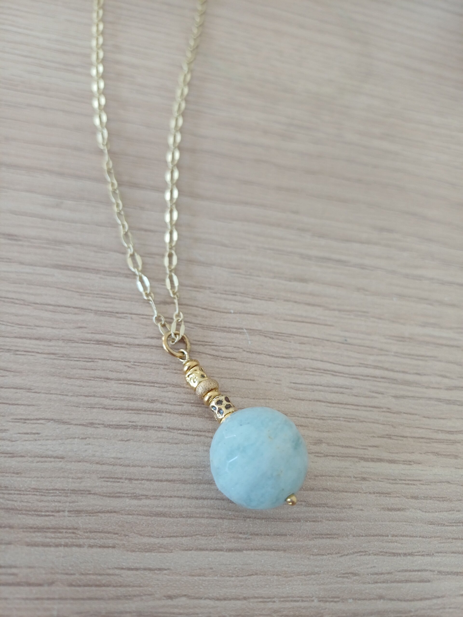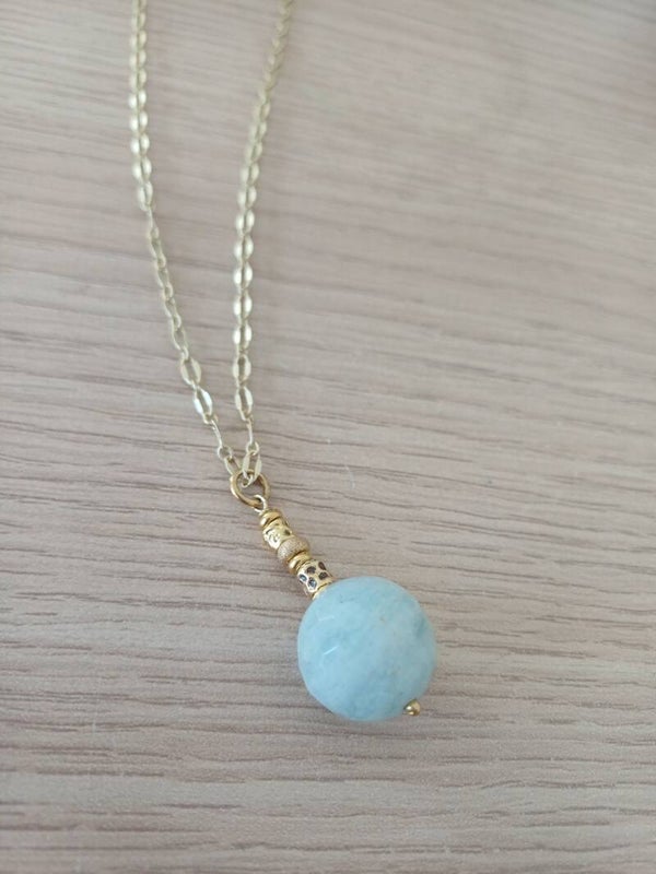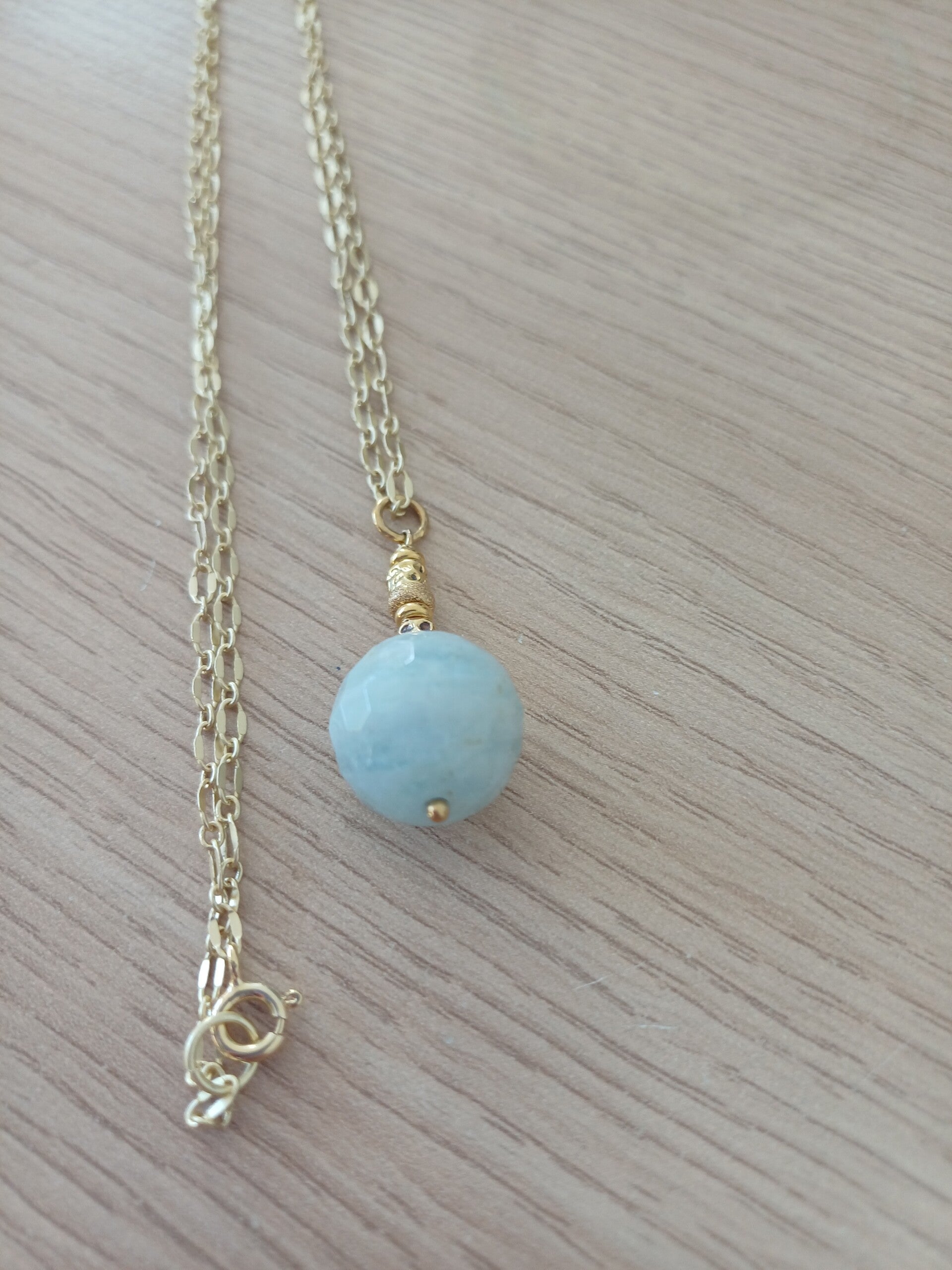 Prachtige lange ketting met hanger in geslepen aquamarijn .