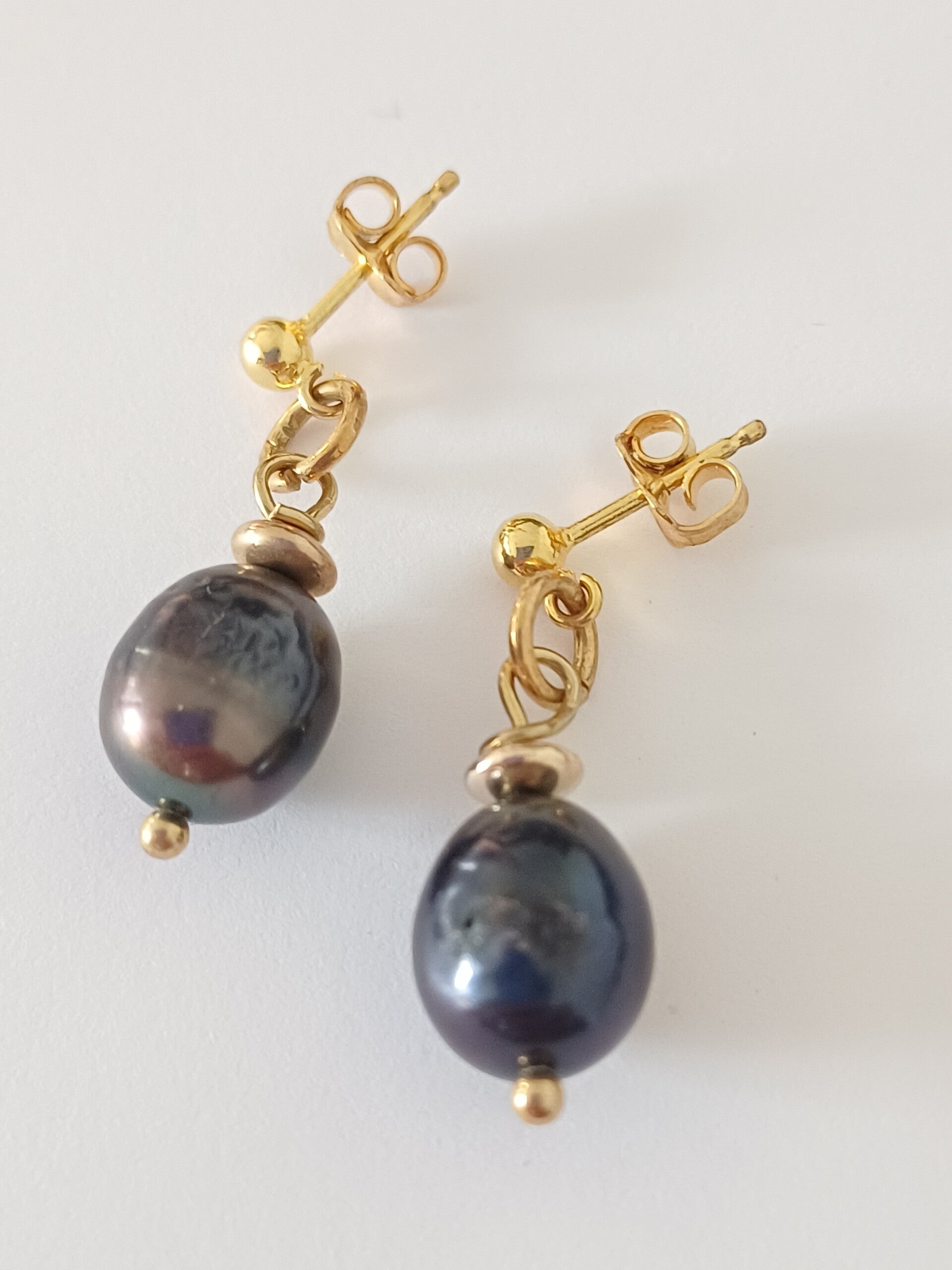 Klassieke oorbel met natuurlijke ovale zwartgrijze parel.
