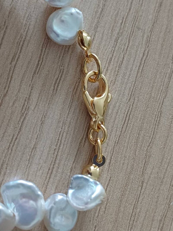 Mooie brede armband met 12 - 15 mm keshi parels.